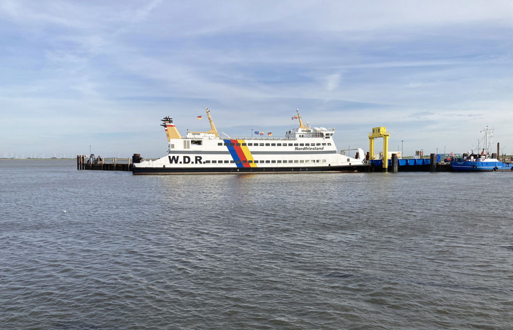 Nach einer kleinen Stärkung schauen wir am Hafen, dem Gateway zu den Inseln Amrum und Föhr, den Fähren bei der Einfahrt und beim Anlegen am Kai zu.