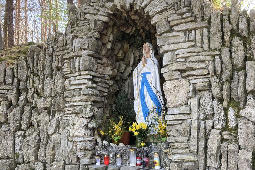 Zu den schönen Orten der südlichen Hochrhön zählt auch die von der Brend durchflossene Gemeinde Schönau an der Brend. Hier entspringt ein Waldweg, der die eine oder andere heilige Stätte passiert.