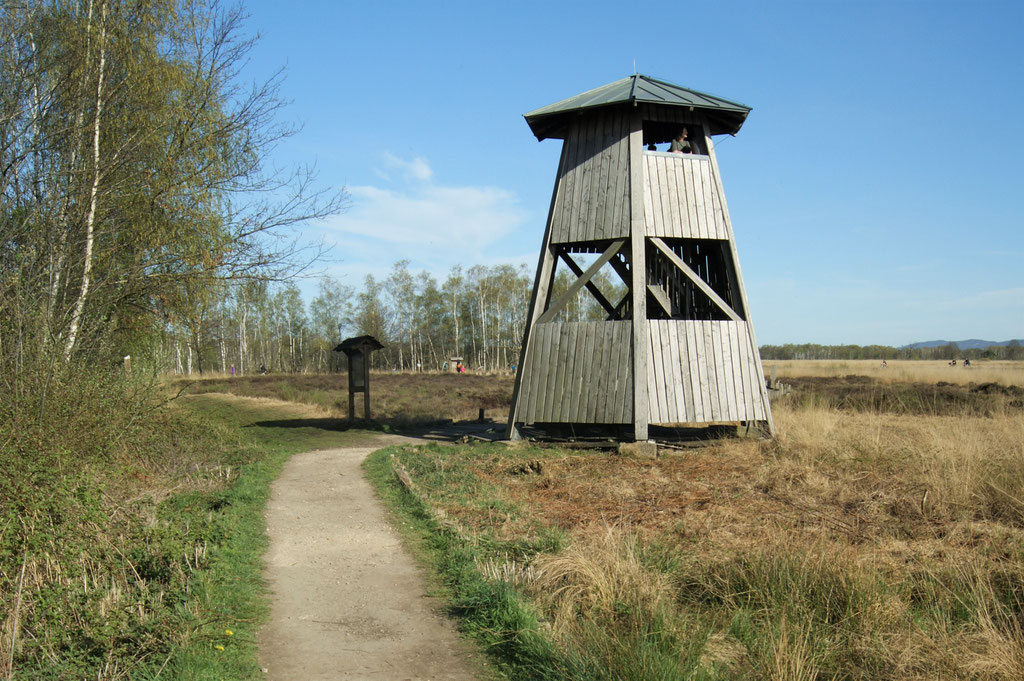 Auch wenn das Gebiet vornehmlich Wanderern überlassen ist, kann man doch zumindest auf einem kleinen Stück auf einem Schotterweg am Moor entlangfahren.