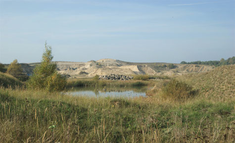 In der Nähe des kleinen Ortes Schependorf verläuft ein recht schöner Schotterweg, der auch von Linienbussen benutzt wird, an einem Kiestagebau entlang.