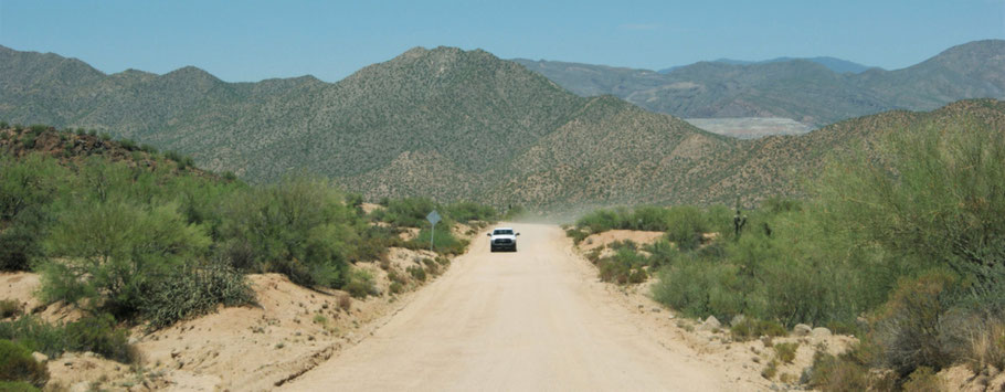 Quer durch die östliche Sonora-Wüste verläuft eine einfach zu fahrende Route, der gut ausgebaute Florence Kelvin Highway. Die etwa fünfzig Kilometer lange Straße ist immerhin auf halber Strecke geschottert und ermöglicht ein entspanntes Fahren abseits des Asphalts.